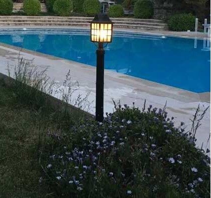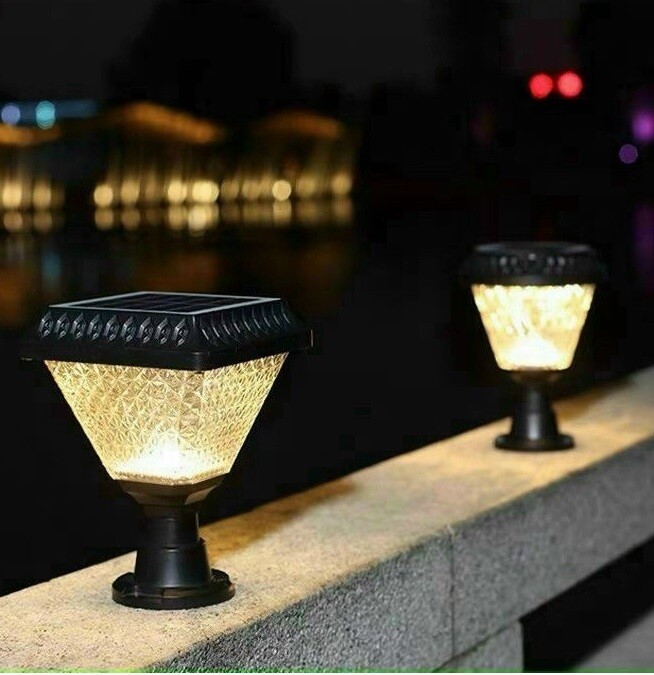 Panel Çim Çit Kare Tabanlı Sekizgen Direk Üstü Bahçe Armatürü Siyah