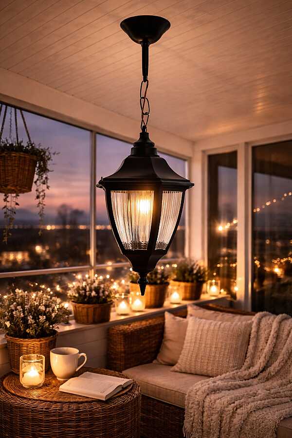 Altıgen Zincirli Fener Bahçe Aydınlatma Tavan Armatürü SİYAH