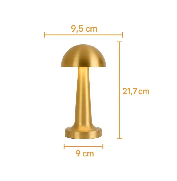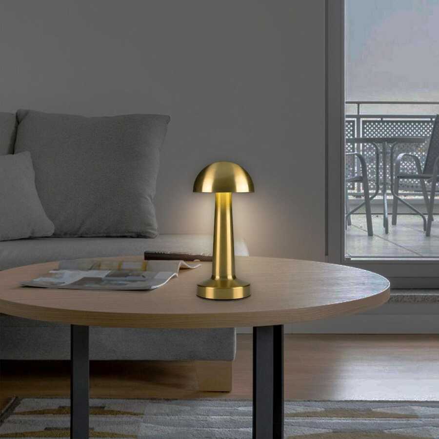 Dekoratif Dokunmatik 3 Farklı Renk Seçenekli Mantar Masa Lambası Gold