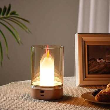 Dimmerli Alev Efektli Masa Lambası Dekoratif Mum
