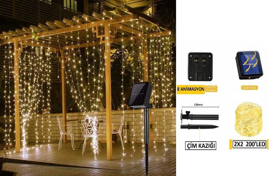 Güneş Enerjili 2x2 mt Perde Led Solarlı Peri Tel Led