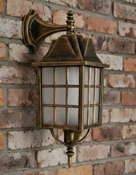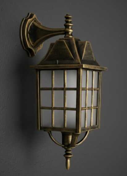 Kafesli Ters Bakan Konsollu Fener Bahçe Aydınlatma Armatürü Sarı Eskitme- Ürün Yüksekliği : 46 cm dir.- E-27 duylu dur- Dış Mekana Uygundur- Yağmur suyundan etkilenmez- Sert Plastiktir.
