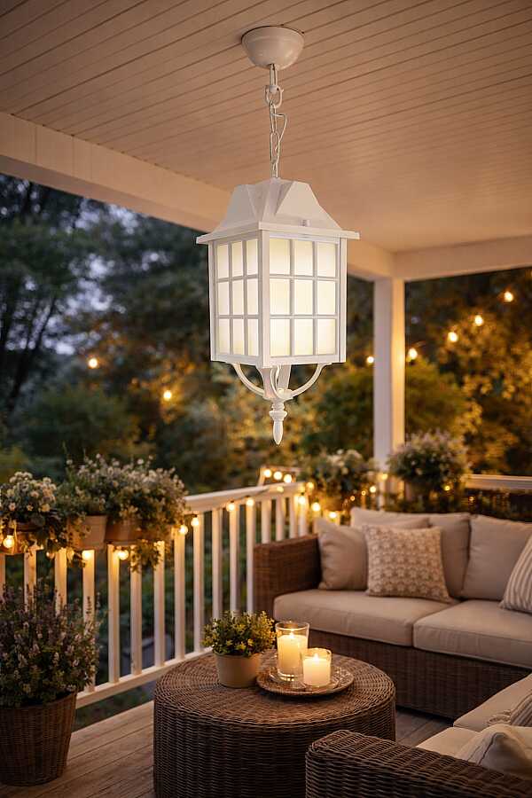 Kafesli Zincirli Fener Bahçe Aydınlatma Armatürü Beyaz