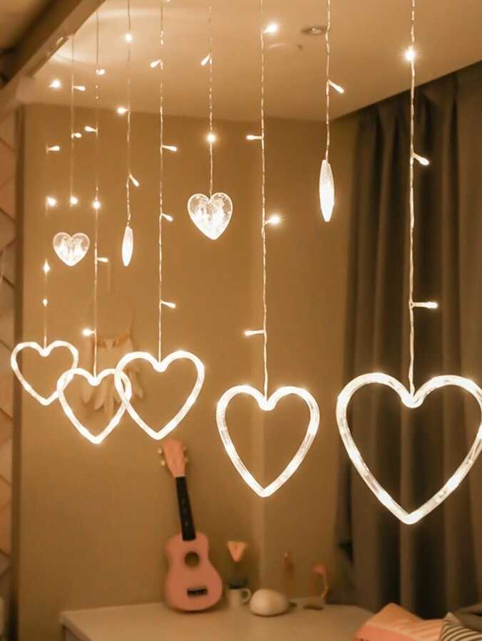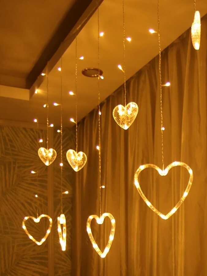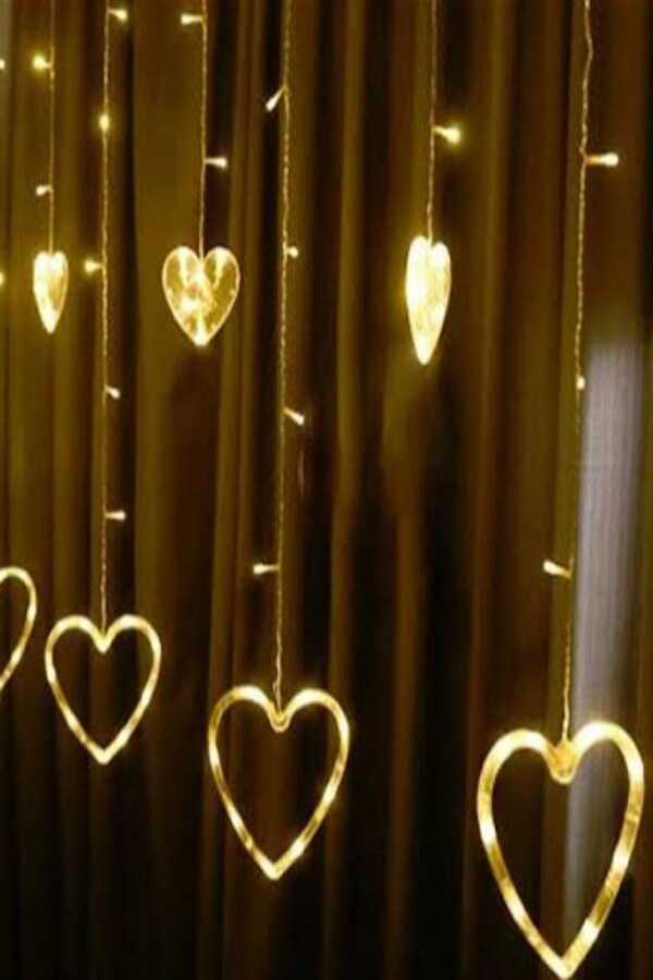 - Şeffaf Kalp şeklinde Perde Led Işık 138 Ledli