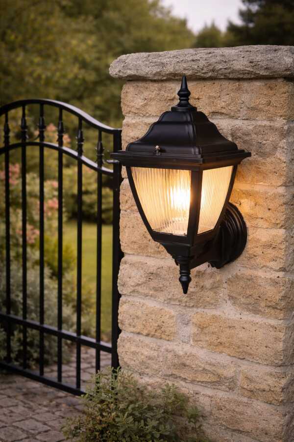 Kare Konsollu Fener Bahçe Aydınlatma Armatürü SİYAH