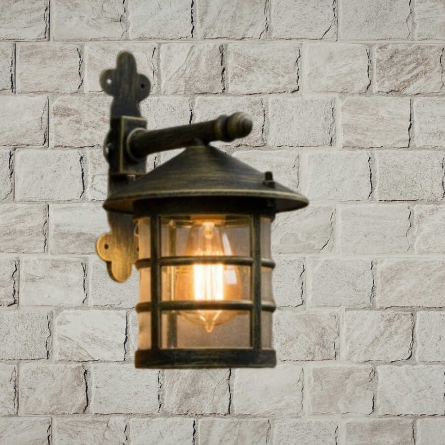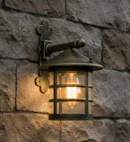 Kafesli Konsollu Fener Bahçe Aydınlatma Armatürü Sarı Eskitme