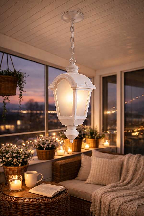 Zincirli Fayton Fener Bahçe Aydınlatma Armatürü Beyaz