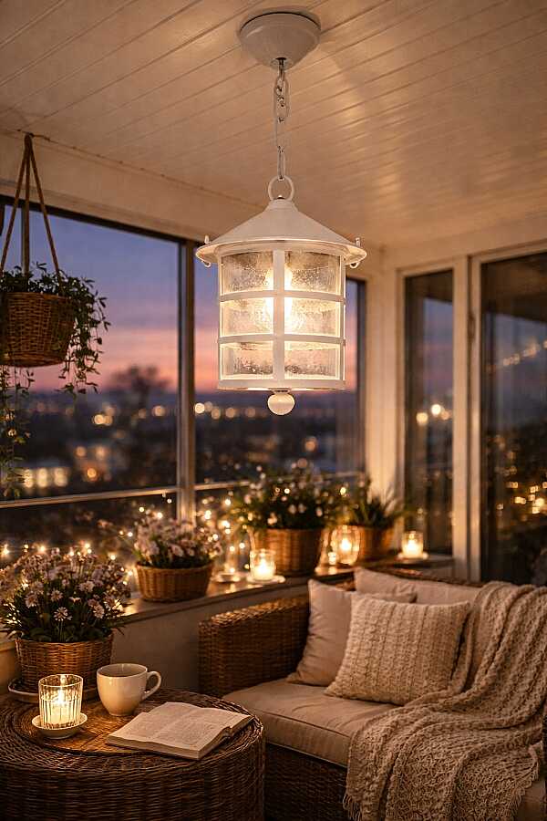 Zincirli Perge Fener Bahçe Aydınlatma Armatürü Beyaz